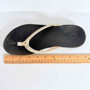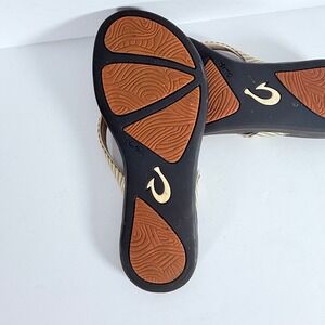 Keywords: OluKai, Ho'opio, Flip Flops, Sandals, Womens Sandals, Beach Sandals, Summer Shoes, Casual Shoes, Beige Sandals, Stripe Sandals, Womens Flip Flops, Size 7, Comfortable Sandals