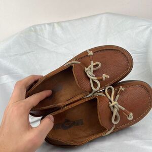 OluKai Huli Brown Leather Loafers With Rubber Soles and Lace up Detail Size 8.5 M