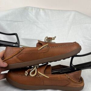 OluKai Huli Brown Leather Loafers With Rubber Soles and Lace up Detail Size 8.5