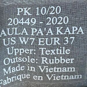 These shoes come in a beige color and are part of the OluKai Kaula Pa'a product line. They have a hidden heel, cushioned insole, and are breathable. The outsole material is made of rubber, providing durability and support. The shoes are available in US shoe size 7 and EU shoe size 37. Add a touch of Hawaiian and Aloha theme to your wardrobe with these stylish and comfortable slip-on shoes.