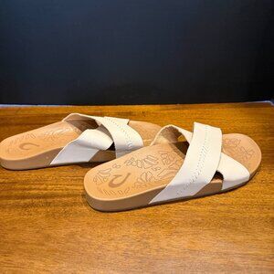 OluKai Kipe'a 'Olu Leather Slide Sandals Women's Neutral Quiet Luxury Sandal sz8