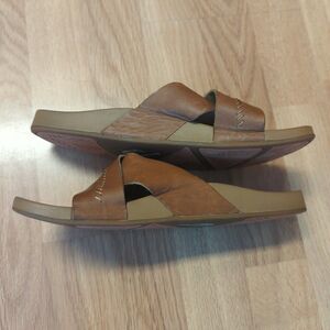 OluKai Kipe’a’Olu Sandals Slides Womens 8 Brown Leather Comfort Summer Beach