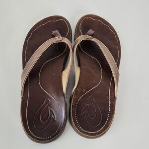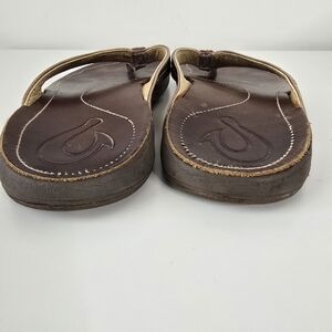 OluKai Kumu Leather Sandals Flip Flops Metallic Gold Size 7 Beach Vacation