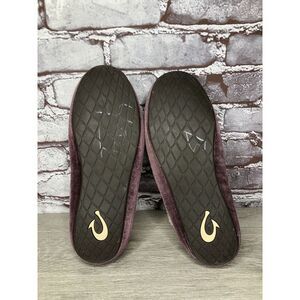 The OluKai Ku'una Lanui Red Ginger Velvet Sheep Fur Slippers are a stylish and comfortable option for women in size 10M US/40EU. These slippers feature a slip-on design with a round toe and a low heel height, making them perfect for casual or travel occasions. The velvet fabric and cushioning provide comfort and performance for the fall, winter, and spring seasons. With a solid purple color and a unique character of ginger, these slippers are a blend of retro, athleisure, and designer styles. Made with high-quality materials and a rubber outsole, these slippers offer a combination of comfort and style for the modern woman.