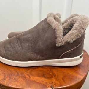 OluKai Malua Hulu Women's Ankle Booties Taupe Brown Faux Fur Waterproof Size 7