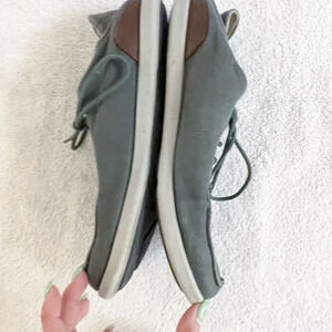 OluKai Manoa Mens 10.5 Casual Oxfords Lace Up Shoes Canvas Slip On Gray Comfort.