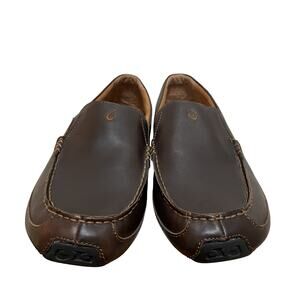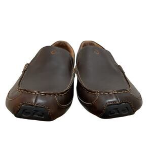 OluKai Mens Akepa Moc Slip On Leather Loafers US 14 EU 47 Brown Driving Shoes