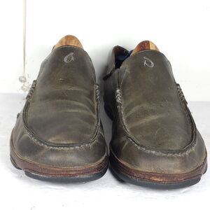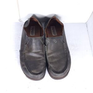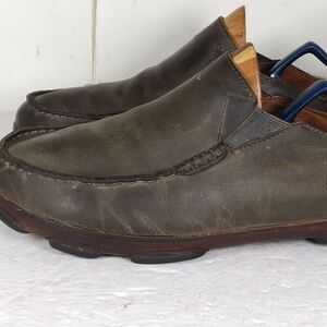 OluKai Men's Moloa US 10,5 Brown Leather Flats Loafer Slippers Shoes