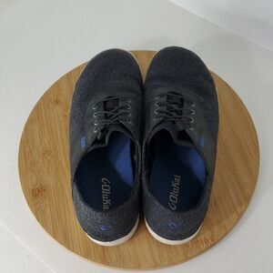 OluKai Men's Nohea Moku Hulu Leather Sneakers Black Grey Drop Heel Size 9