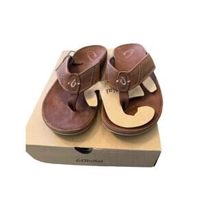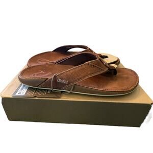OluKai Men's Rum Nui Leather Slip On Sandals Size 10 M