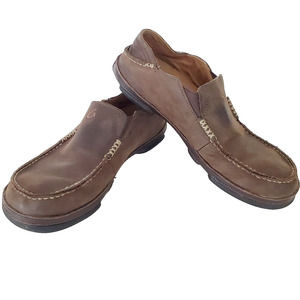 OluKai (Mens Size 8.5) Moloa Casual Slip On Loafers Shoes Dark Brown Leather
