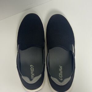 OluKai Men’s Sz 9 Slip On LAE’AHI Black And Gray Rubber White Soles Non Slip