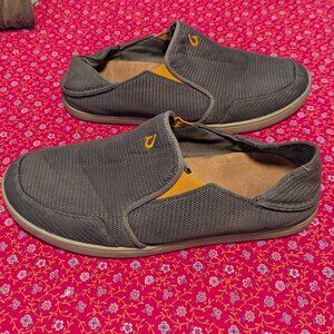 OluKai Nohea Mesh Slip On Drop In Heel Fold In Dark Shadow Sneaker Shoe Size 10 (grey orange)