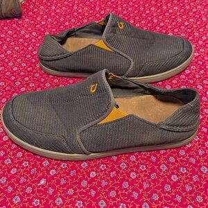 OluKai Nohea Mesh Slip On Drop In Heel Fold In Dark Shadow Sneaker Shoe Size 10 (grey orange)