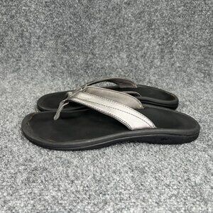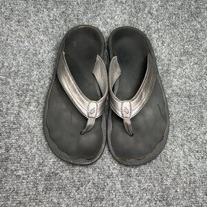 OluKai Ohana Sandals Women's 7 Metallic Grey Athletic Recovery Beach Flip Flops