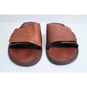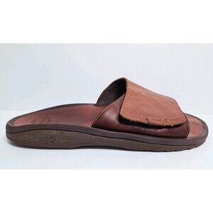 OluKai Ohana Slides Sandals Brown Leather Men's Size 14 Adjustable