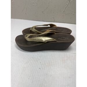 OluKai Paniolo II Brown Gold Leather Wedge Thong 20133-5048 Womens Size 9 EU 39