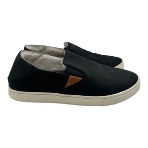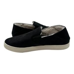 OluKai Pehuea Heu Shearling Slip On Shoes Womens 10 Black Lava Leather Sneakers