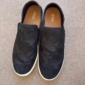 Olukai Womens size 11 Black Camo Slip On Pehuea Pa'I Lava Rock Loafer Shoes