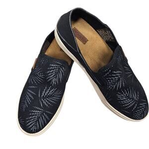 OluKai Pehuea Women's Breathable Slip-On Sneakers Black with Palm Fronds Size 8