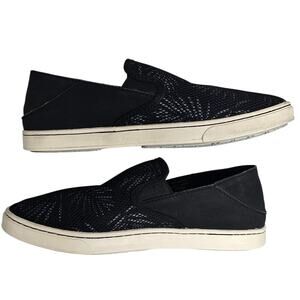 This is a pair of OluKai Pehuea Breathable Slip-On Sneakers in EXCELLENT PRE-OWNED CONDITION. They are a Women's Size 8. Crafted with lightweight materials, the OluKai signature Drop-In Heel, and a removable/washable insole, this slip-on sneaker is as vibrant and laid-back as life in the Islands. Retail: $120.