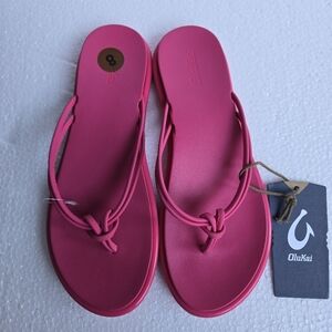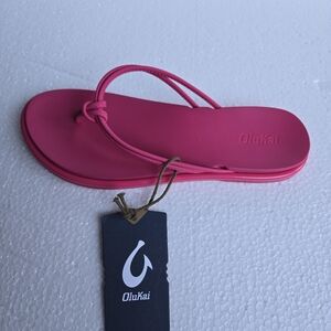 Experience the perfect blend of style and comfort with OluKai's pink sandals. These vibrant sandals feature a simple thong design and a flat sole, ideal for casual summer outings. The warm pink hue adds a pop of color to any outfit, making them a must-have for beach days or everyday wear.