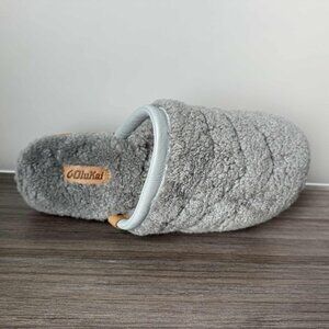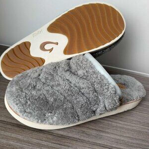 OluKai Pūpū Mua Women’s Soft Shearling Mule Slippers Size 9 $130 Pale Grey Pupu