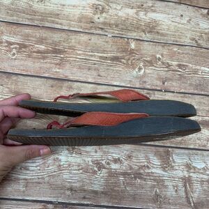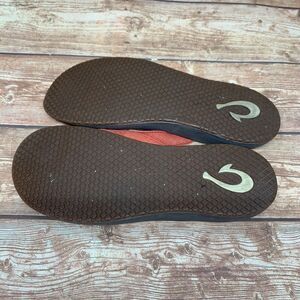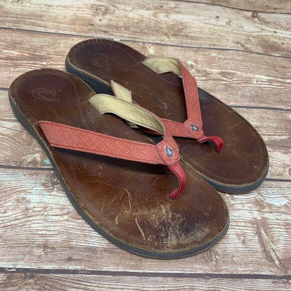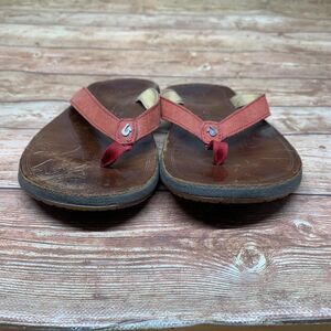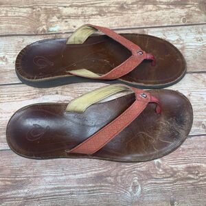 OluKai Pua Brown Red Leather Flat Flip Flop Sandals - Women's Size 8 US / 38 EU