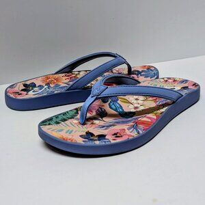 OluKai Puawe Flip Flops in Cloud Blue/Flower