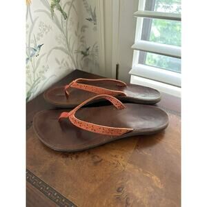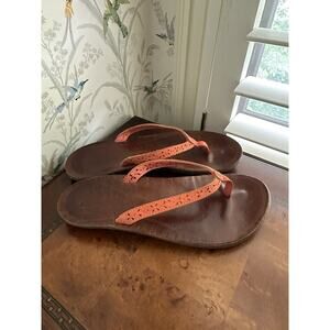 OluKai Puka Flip Flops Thong Sandals Women's Size 9 Coral Perforated Leather