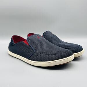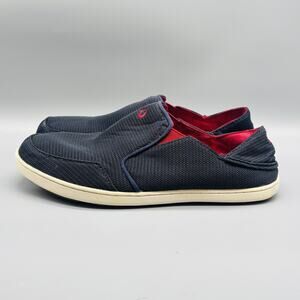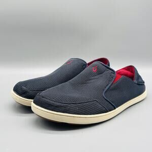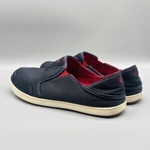 OluKai Shoes Mens 10 Black Red Nohea Mesh Slip On Loafer Casual Comfort Sneakers