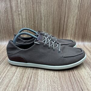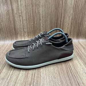 OluKai Shoes Mens 10 Manoa Brown Canvas Lace Up Boat Loafer Textile Preowned See Photos