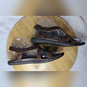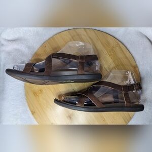 OluKai Upena Brown Leather Beach Sandal Wet Grip Sole Size 6