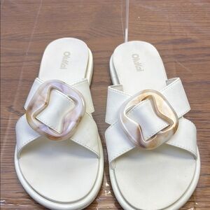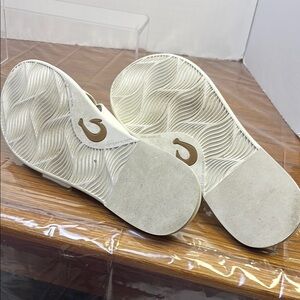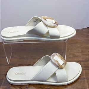 OluKai White Sandals with Cushioned Footbed and Gold Buckle