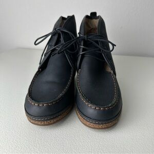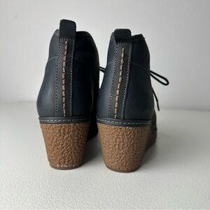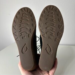 OluKai Women’s Black Leather Lace Up Wali Wedges Size 7