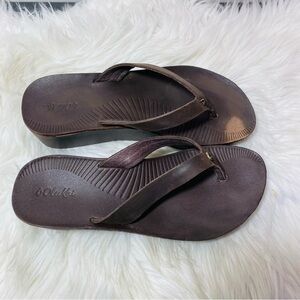 OluKai Women's Chocolate Brown Platform Thong Sandals Sz-6