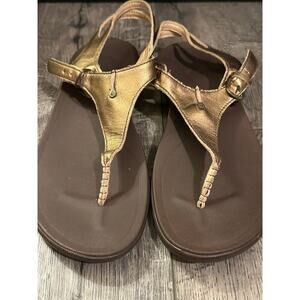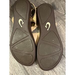OluKai Women's Gold & Brown Thong Leather Upper Sandals Size 10