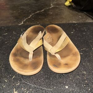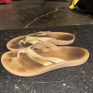 OluKai Women's Kaekae Flip-Flop Thong Sandals Gold Brown Women's Size 10