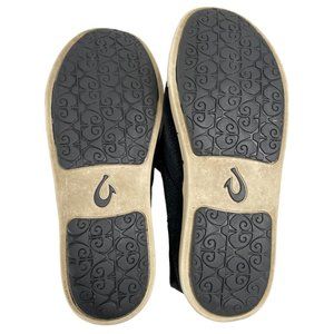 OluKai Women’s Pehuea Black Leather Snake Print Collapsible Heel Sneakers Sz 8.5