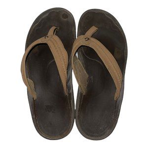 Olukai Brown Leather Thong Flip Flops Sandals Men's 15