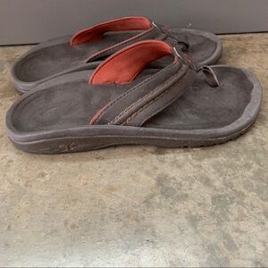 Olukai Flip Flops Size 7 Brown with orange accents, great condition Ship same/next day