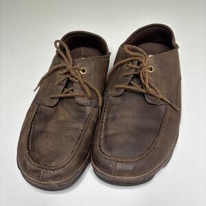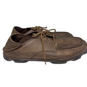 Olukai Hamakua Poko Brown Leather Moc Toe Collapsable Heel Oxford Shoes 10
