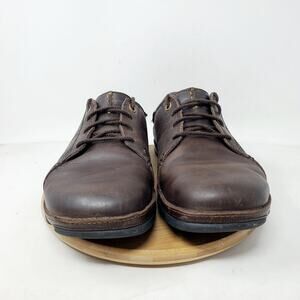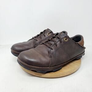 Olukai Hano Shoe Men 8.5 Brown Leather Oxford Slip On Fold Down Heel WORN