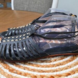 Olukai Hikina Black Leather Sandals size women’s 10, Good condition,,missing one wooden bead
