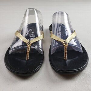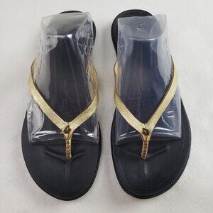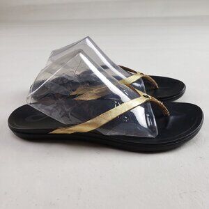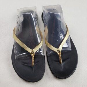 Olukai Ho'opio Flip Flop Sandal Womens 9 Gold Leather Slip On Strappy Thong