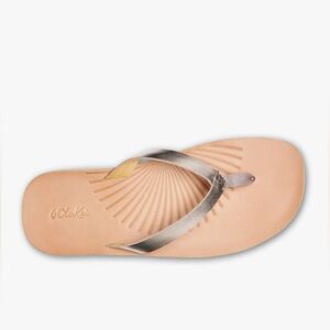 Olukai IWI Womens Size 7 Silver Golden Sand Thong Flip Flop Sandals NWT