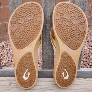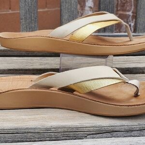 Olukai KAEKAE Slip On Leather Sandals Womens Size 11 Thong Flip Flops Tapa Gold