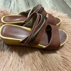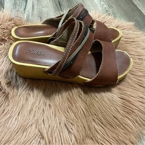 Olukai Kamala Wedge Brown Sandals Size 7