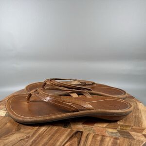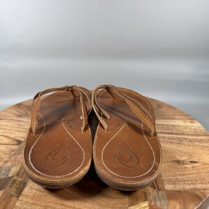 Olukai Kapehe Luana Sz 9 Flip Flop Thong Sandals Brown Womens Leather