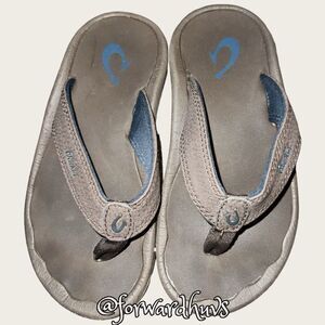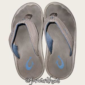 This listing is for an awesome pair of kids, Olukai Kids Leather Sandals Size 11 - 12 which are brown flip-flop style. These are an excellent preowned condition and have tons of life remaining.